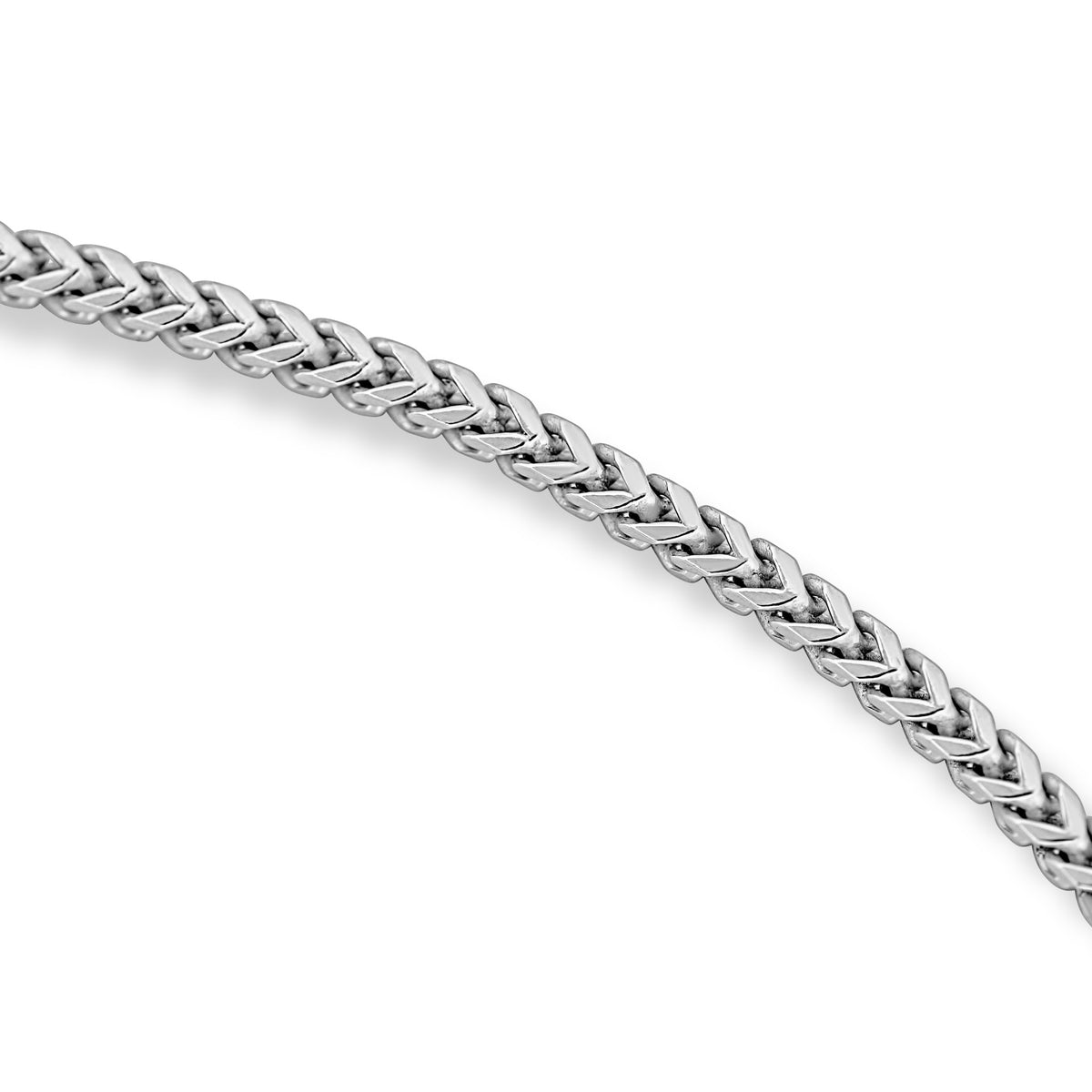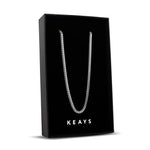 The Keays 2.6 mm Franco Chain embodies strength and precision, with V-shaped chevron links echoing our logo. Its woven design delivers sleek presence and refined craftsmanship—versatile enough to wear solo or layered with confidence.